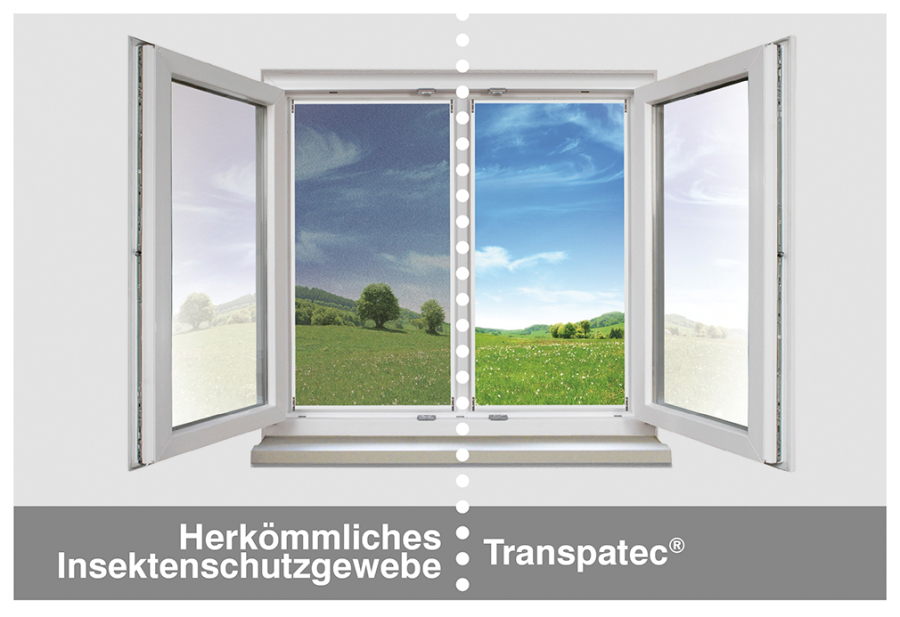 - Transpatec ist ein High-View-Insektenschutzgewebe für Rollo- und Rahmensysteme – mit sehr klarer Durchsicht und zuverlässigem Schutz.